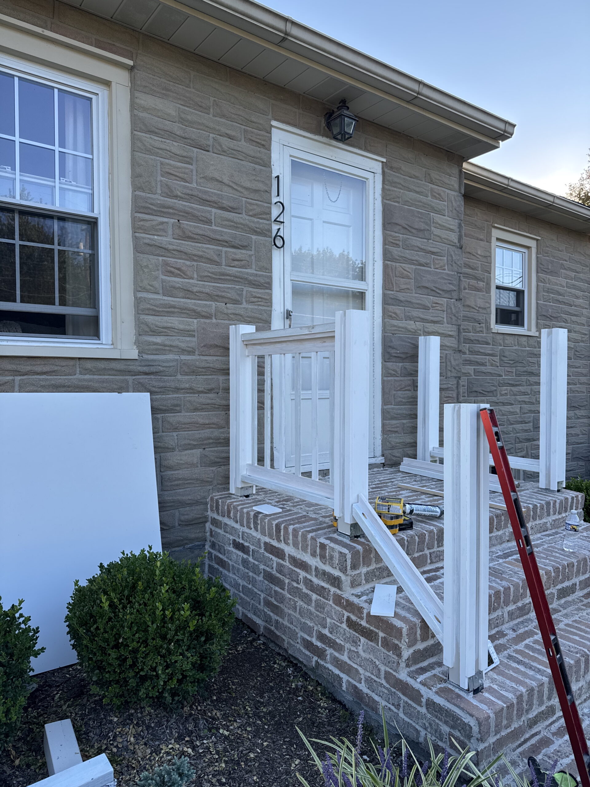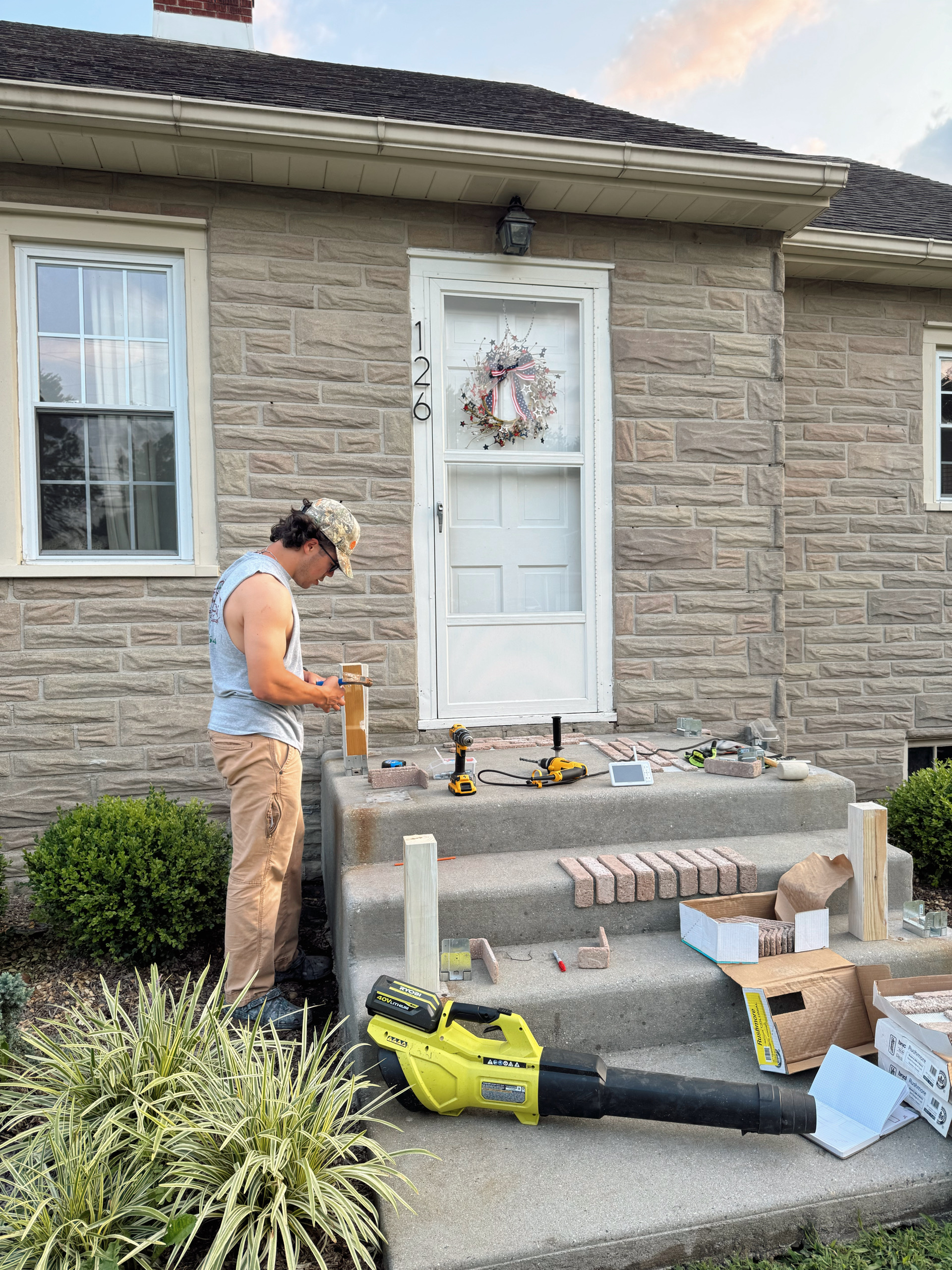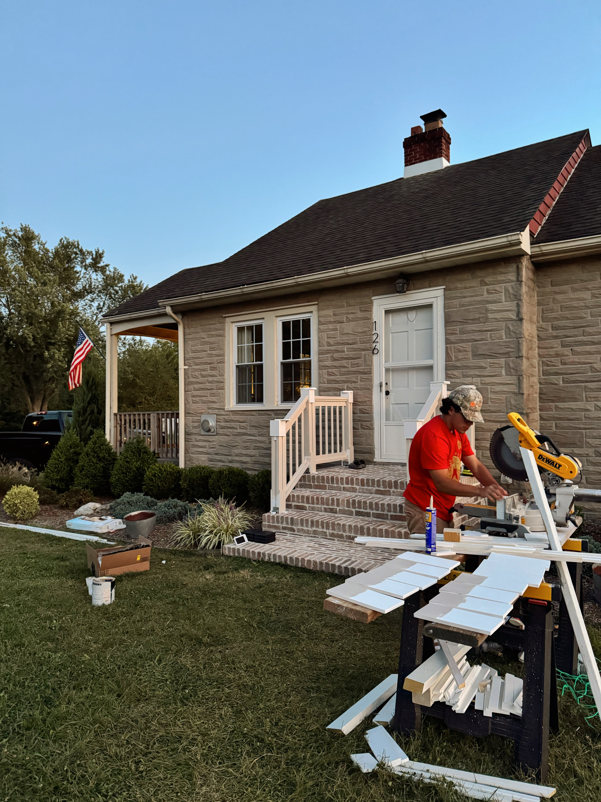 After the brick steps were done, it was time to tackle the railing!! We wanted something that felt custom and elevated and decided to build our own porch railing from scratch!