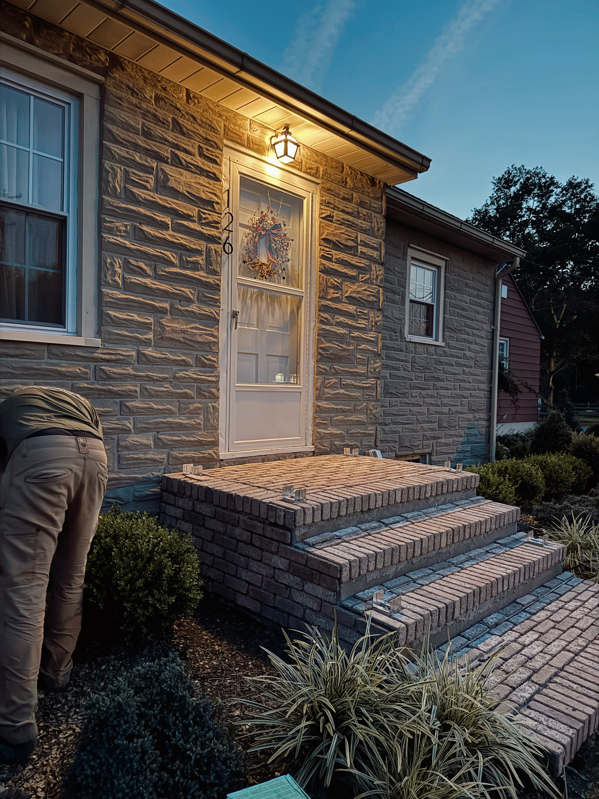 Once everything was set, it was time to grout the steps (which ended up being the most tedious part 😅). After a few trial-and-error attempts with consistency, we finally got the hang of it and used this grouting bag for the grout! I wanted our porch to look like it had always been there, so I went with a slightly “messier” grout style for that timeless, old-world charm.